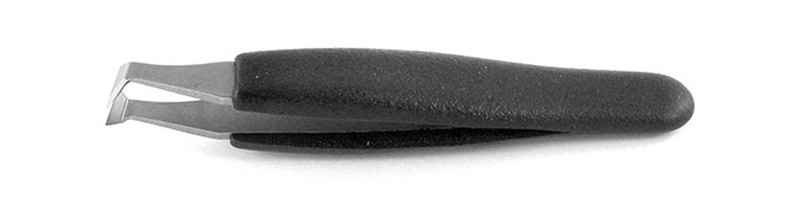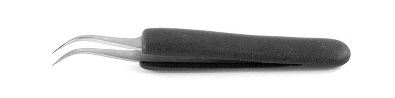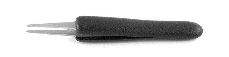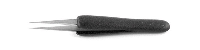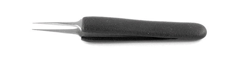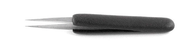 Anti-magnetic precision tweezers with soft ESD ergonomic cushion grips (resistivity 10E8) for enhanced operator comfort. Available with an ESD black Foam (DN) handle.