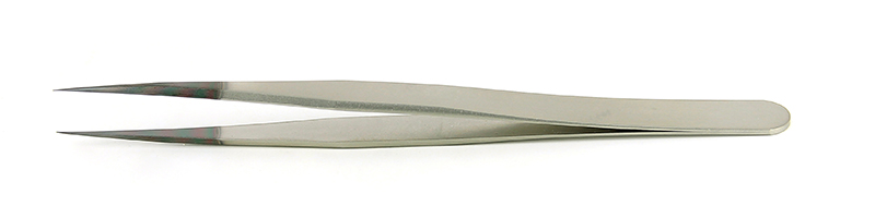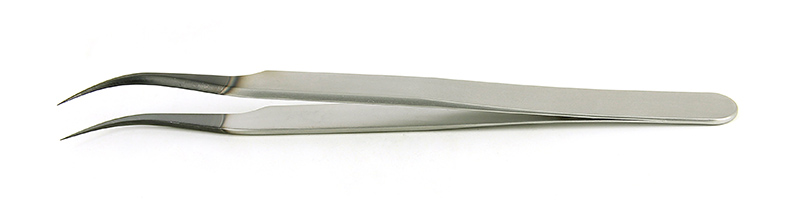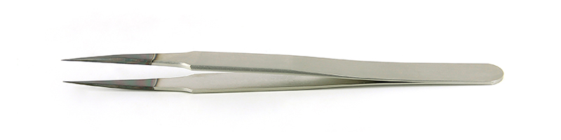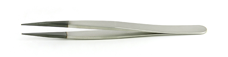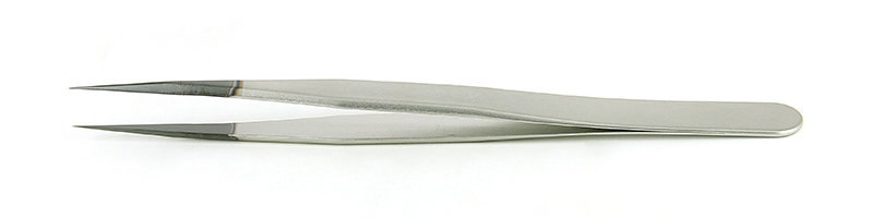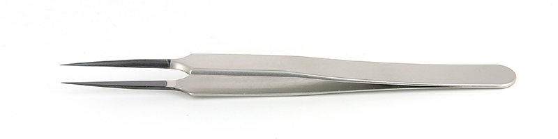 Anti-Magnetic precision tweezers with ESD safe diamond coating (resistivity 10^6 Ohm). This high hardness and high elasticity biocompatible coating protects tweezer tip from wear. These tweezers are ideally suited for handling of hard materials, demanding sample preparation, biological, clean room and high use applications. DC tip coating is available for any Ideal-tek tweezer model.