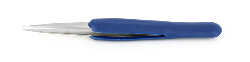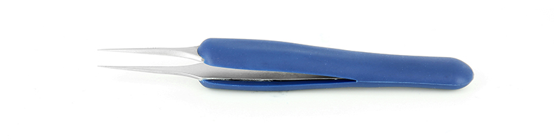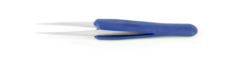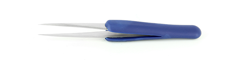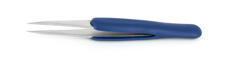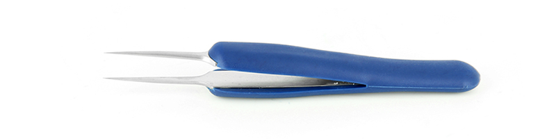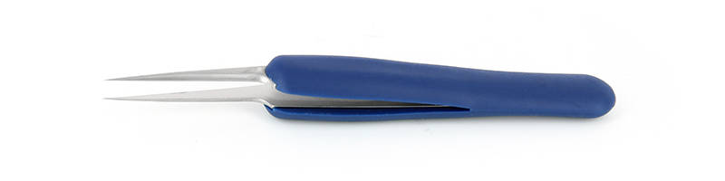 Soft ESD safe ergonomic cushion grips (resistivity 10E9 Ohm) provide enhanced operator comfort and reduced finger stress when handling ESD sensitive components or small static items.